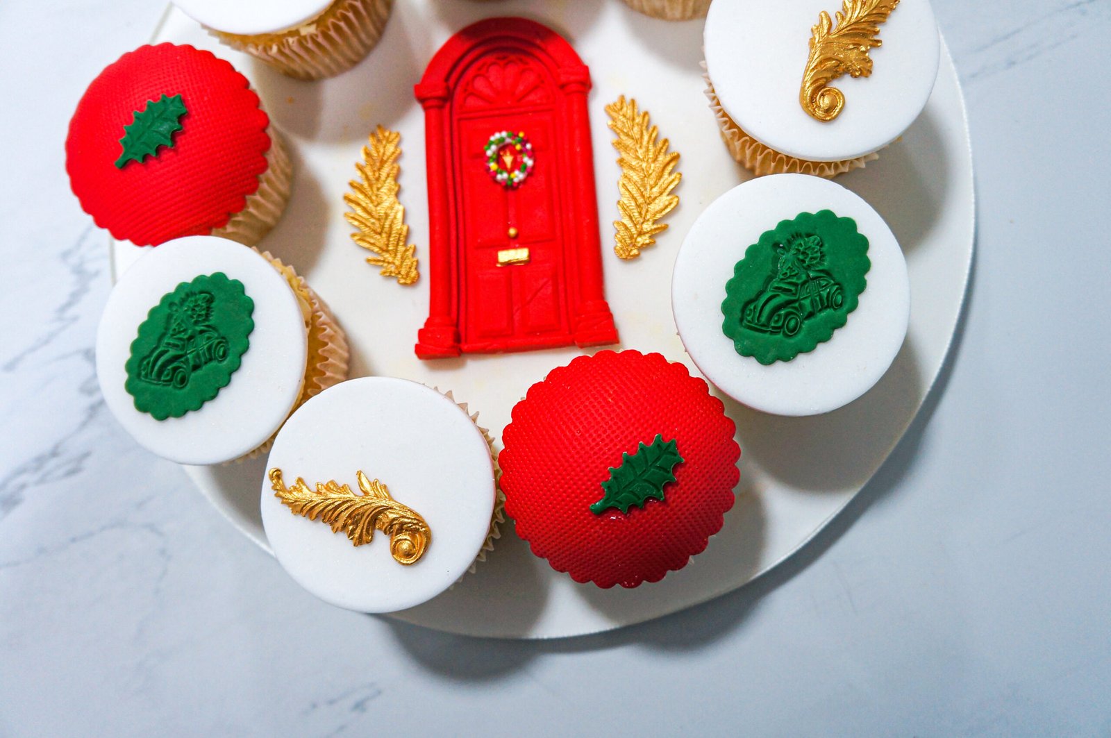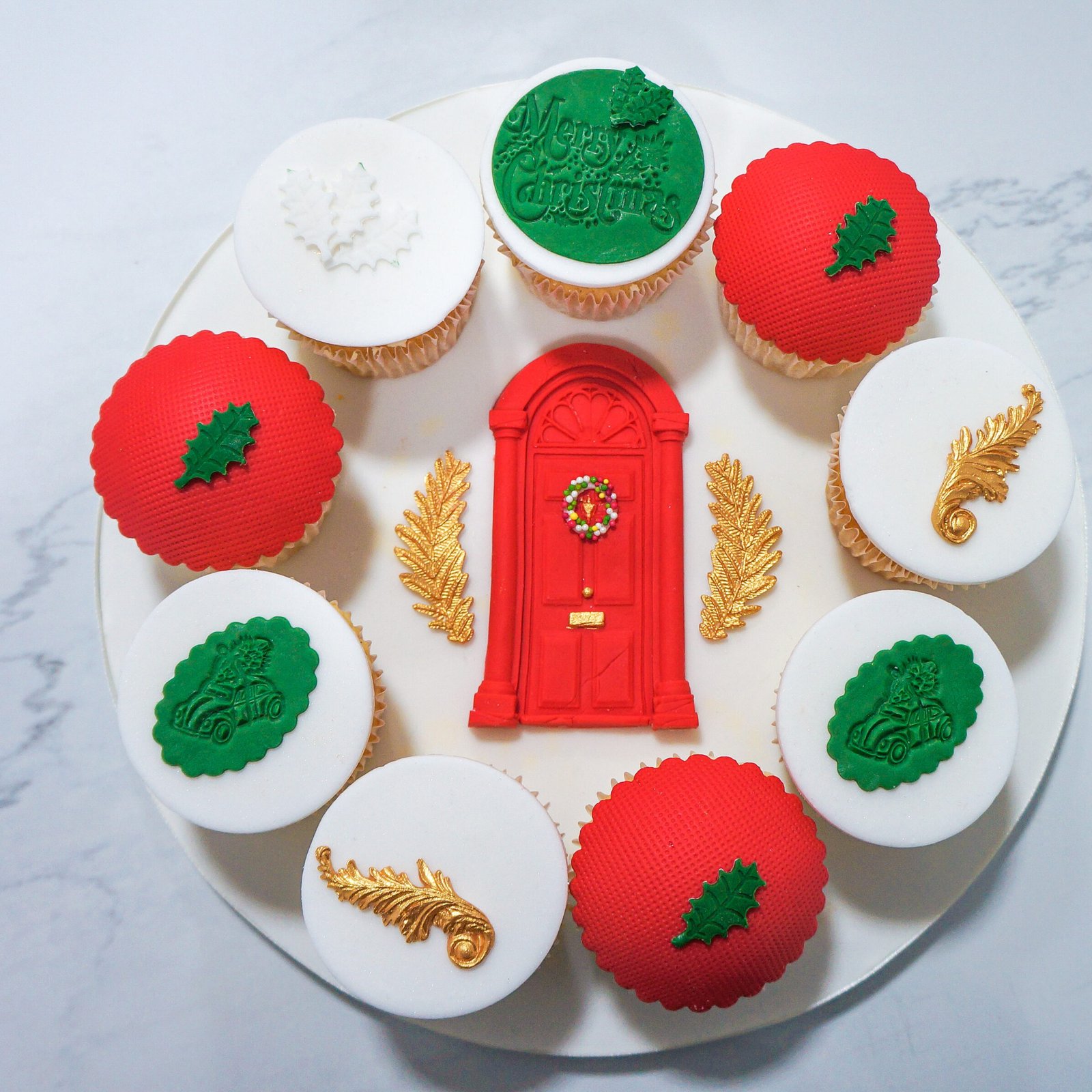 Flour, unsalted butter, free-range eggs, sugar, salt, milk, extracts, vegetable oil, baking powder, baking soda, icing sugar, fondant icing.